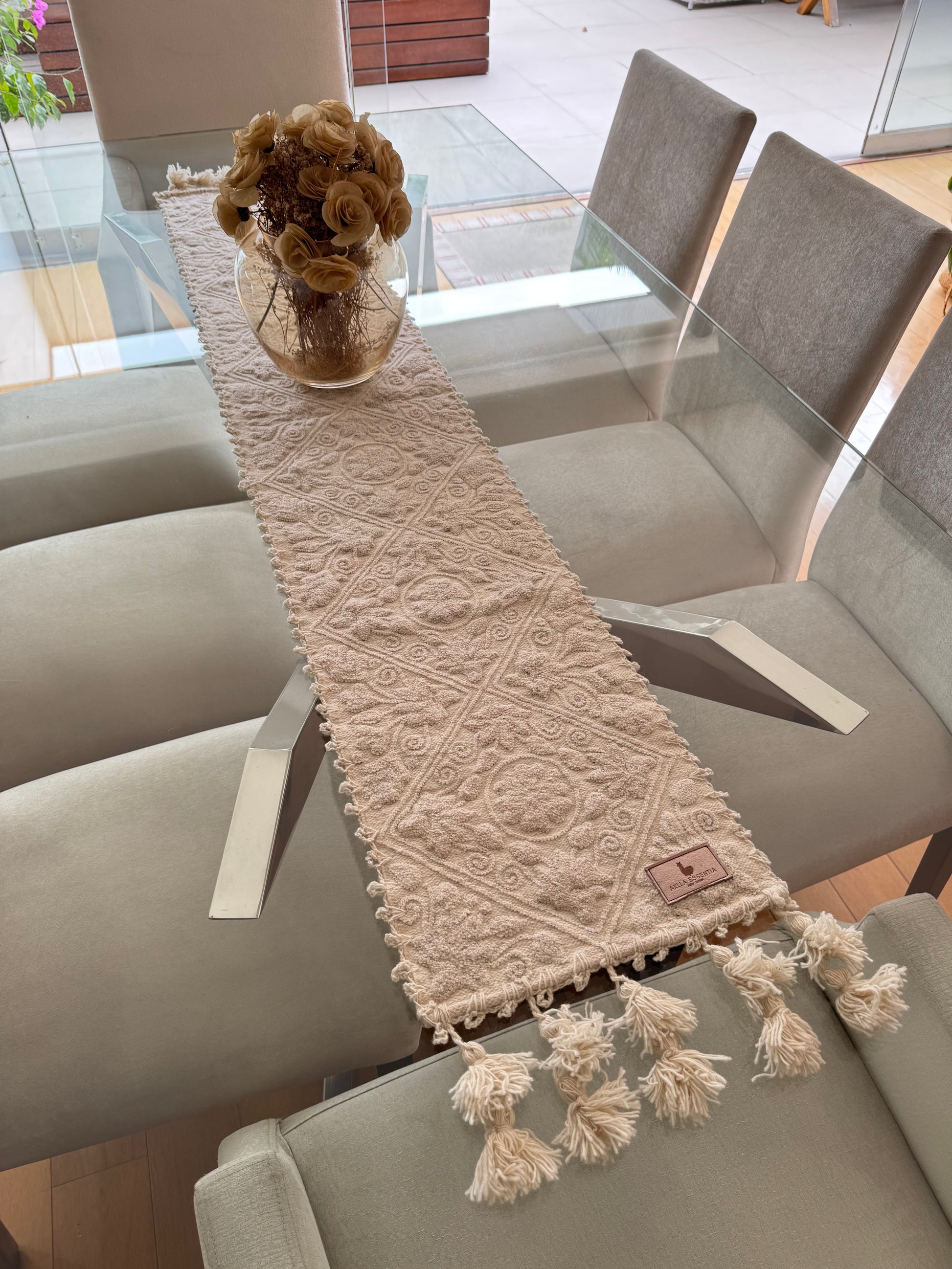 El Camino de Mesa de Lana Natural de Aklla Essentia combina materiales nobles y un diseño sobrio que aporta calidez y carácter a cualquier espacio. Su textura suave y densa transmite una sensación acogedora, ideal para mesas de comedor, consolas o aparadores.