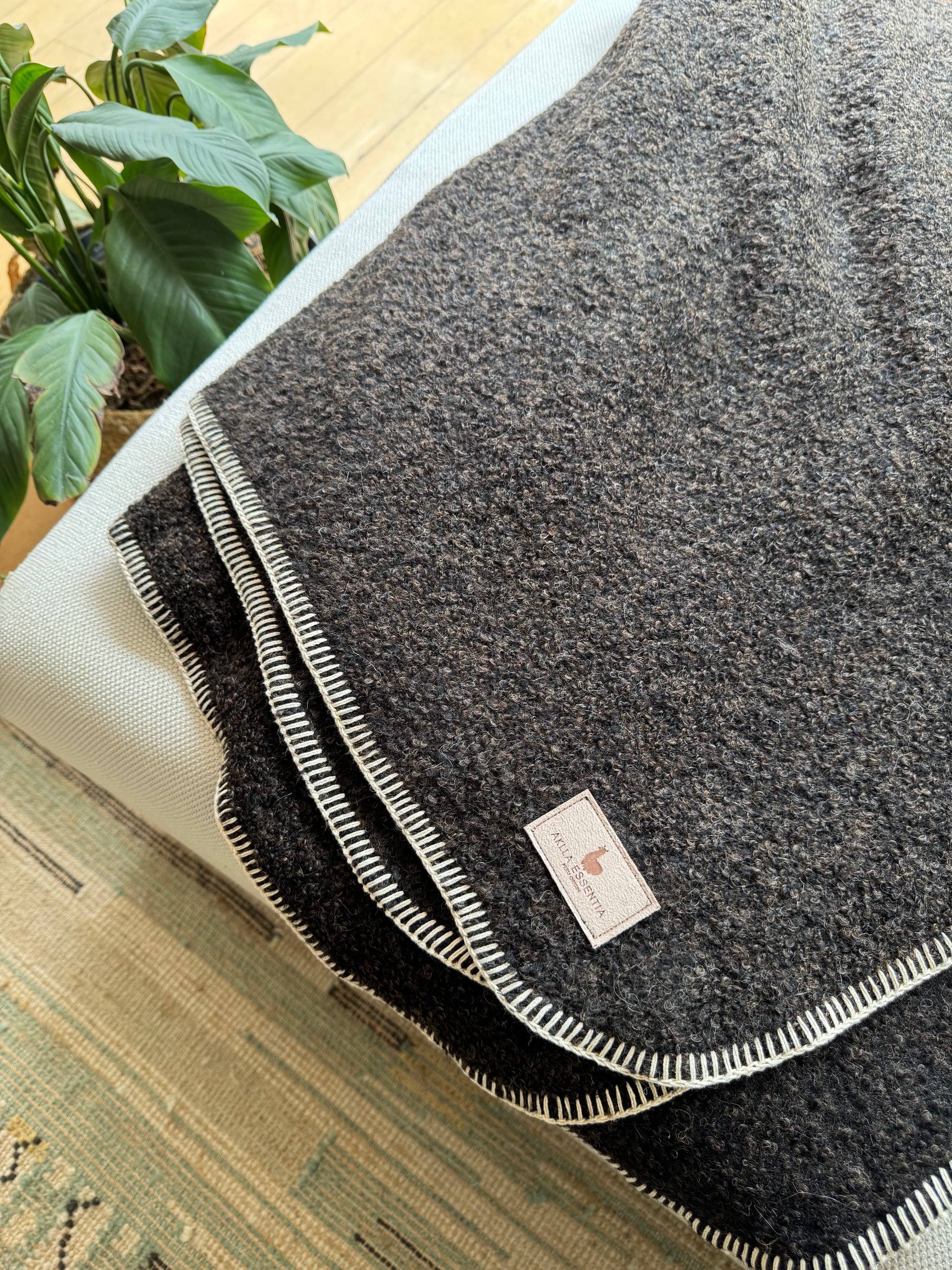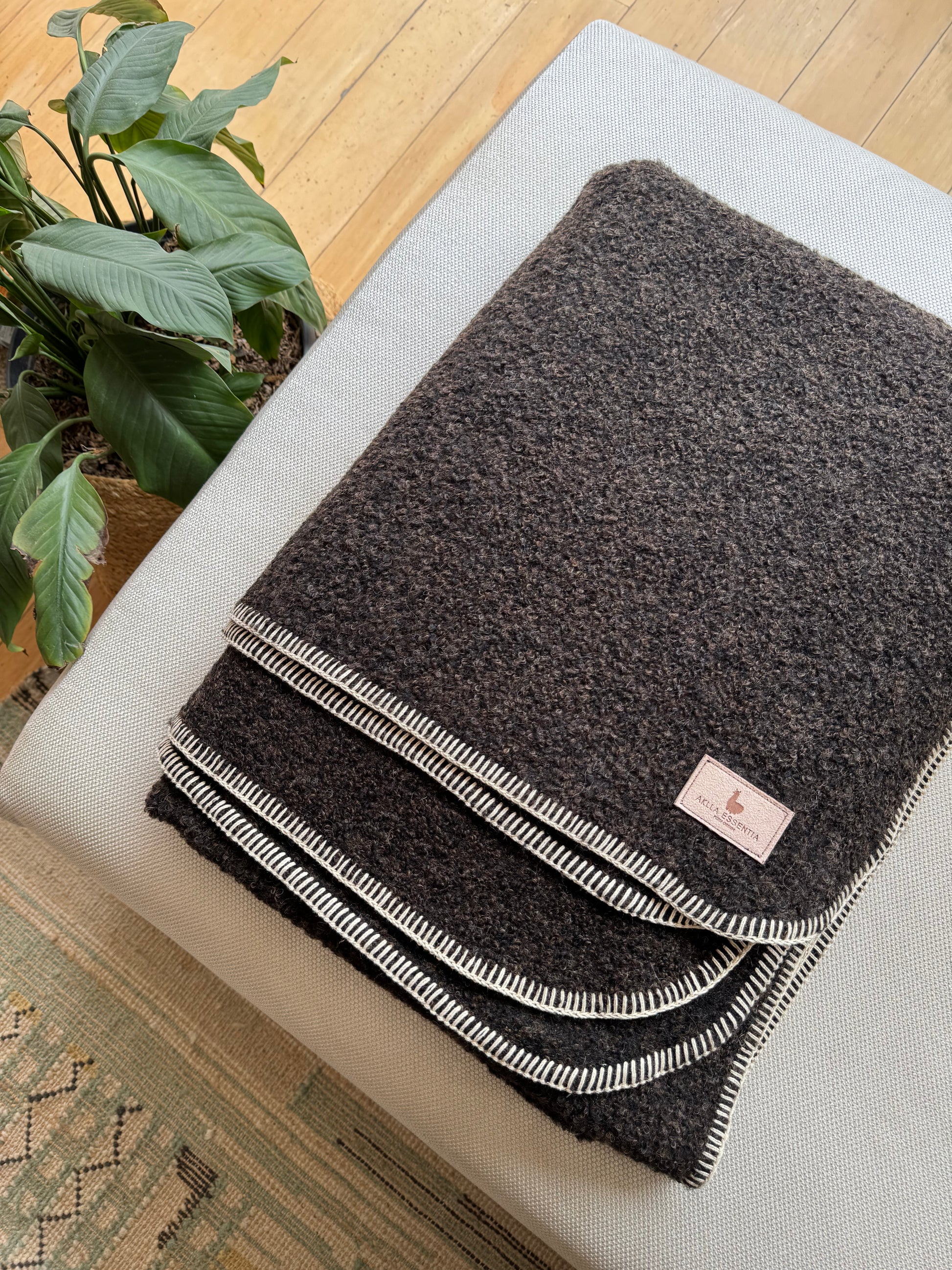 La manta KILLA, cuyo nombre rinde homenaje a la luna en la cosmovisión andina, destaca por su elegancia discreta y su calidez envolvente. Una pieza única —literalmente— tejida en tonos café con matices cálidos que evocan la conexión terrenal de los Andes.